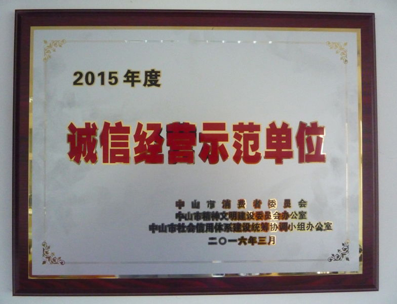 2015年誠信經(jīng)營示范單位